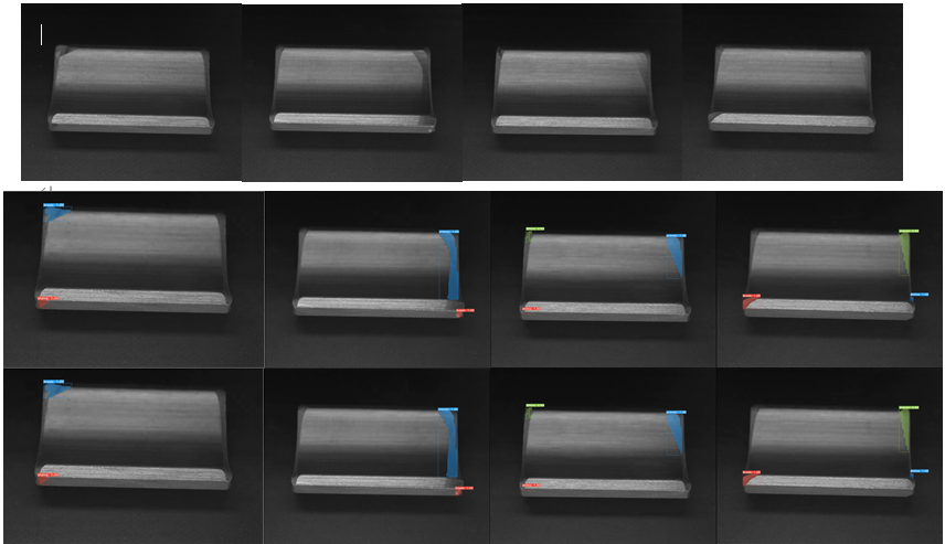 系统检测磁瓦表面破损并挑选不合格品,图示为检测结果。
